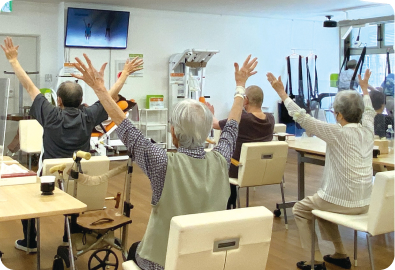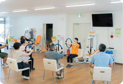 軽いストレッチを取り入れたリハビリをグループで行います。